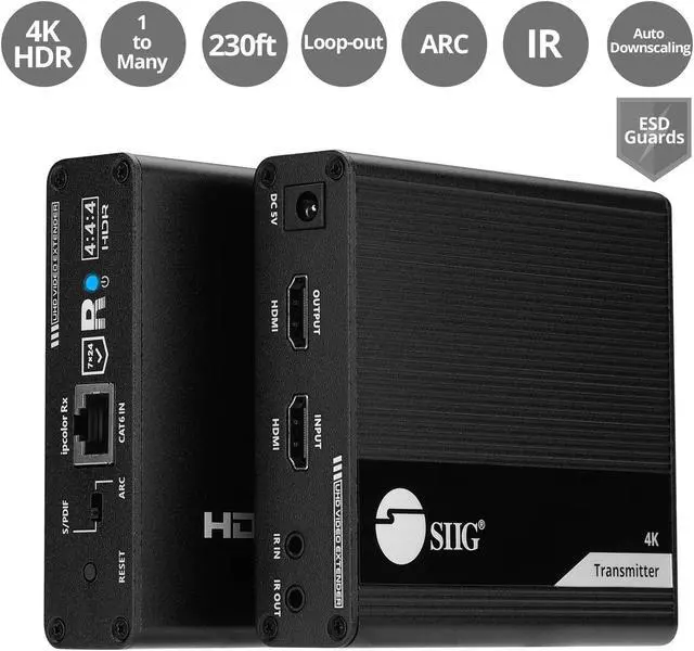 SIIG 230ft 4K HDMI Extender with Loop-Out & Daisy Chain, HDMI 2.0 HDR Balun, HDCP 2.2, EDID Learning, Near Zero Latency, ARC & Audio Extractor, Mounting Kit (CE-H26M11-S1)