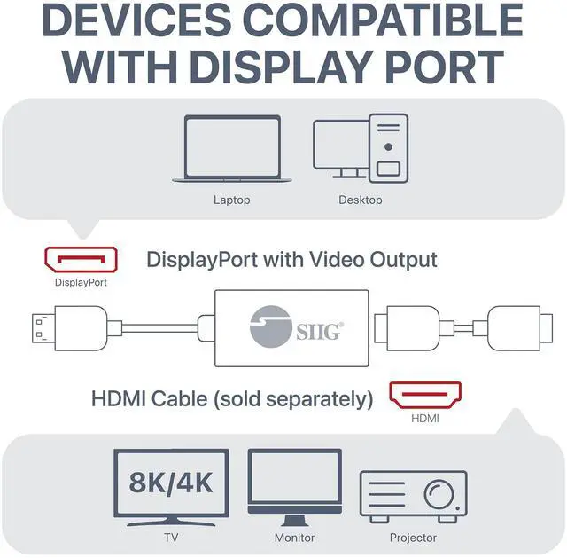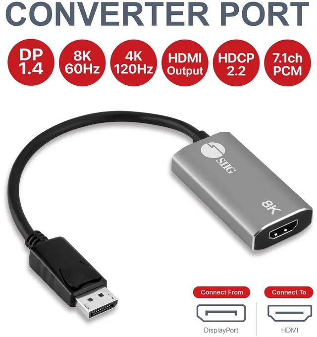 This adapter easily converts a DisplayPort output to a HDMI video output to allow you to add one HDMI screen. This gadget is perfect for video gaming, video editing and other situation required flicker-free video and ultra high video resolution. This DisplayPort to HDMI adapter comes with one DisplayPort 1.4 input port for source device or computer, one HDMI video output, and one USB-C port for power input only.