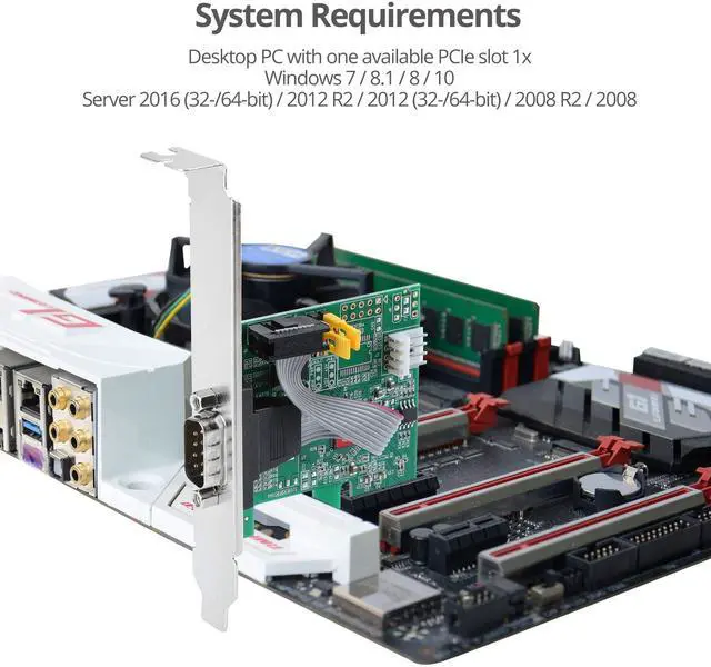 PCIe CARD: Adds 1 9-pin RS-232 serial port to PCIe enabled desktop computers, supports data transfer rate up to 250Kbps, Compliant with PCI Express 2.0 Gen 1 ^^