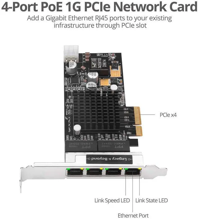 SIIG 4-Port Gigabit Ethernet with PoE PCIe Card - Intel I350 Chipset - PCIe 4 Lane - 4 Port Gigabit Ethernet PCIe Card (LB-GE0811-S1)