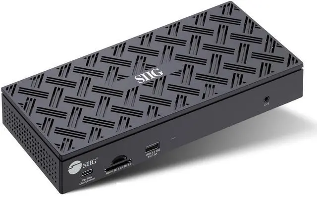 Transform your laptop into a desktop: Connects up to four DisplayPort or four HDMI displays, 1x USB Type-C PD 30W port (charging only), 1x Gigabit Ethernet, 1x USB Gen-2 10Gbps Type-A port, 1x SD card reader, 3x USB Type-A ports, 1x 3.5 mm headset jack, and 1x security lock slot.