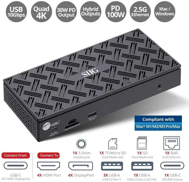 ^^ Wide Compatibility: DisplayLink certified for universal compatibility with devices from Dell, HP, Lenovo & Apple; supports Windows OS (Intel/AMD/Snapdragon), Mac M1/M2/M3 Pro & Max; works with TB3/TB4, USB4 & USB-C/A 5Gbps host devices. Recommended for productivity software, NOT for gaming. Uninstall any legacy DisplayLink driver (v 5.2. 5 or earlier) and install the latest driver from SIIG.