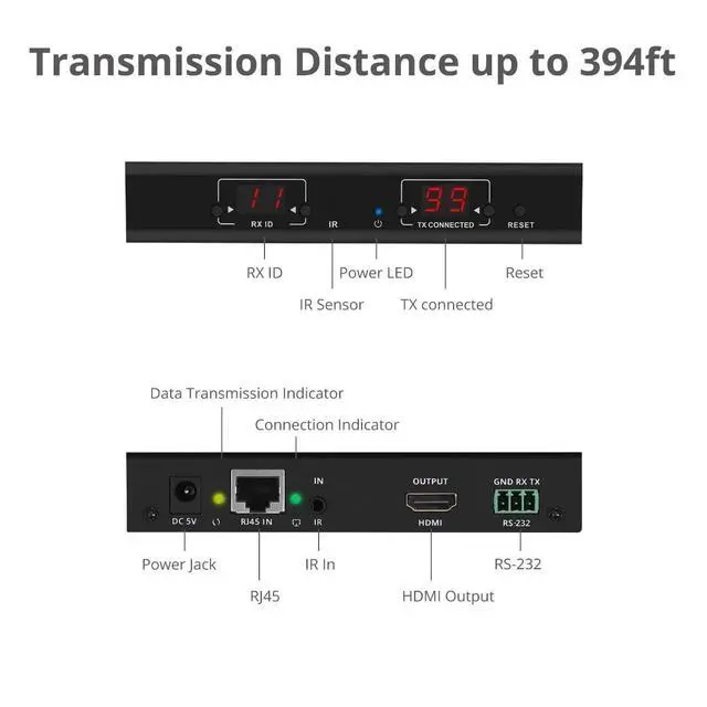 THIS is ONLY the Receiver Unit - Receives HDMI signals with stereo audio over UTP CAT5e/6 cabling up to 394ft (120 meters) away, requires HDMI Over IP Extender with IR - Transmitter (part # CE-H23B11-S2) are sold separately ^^ Works together with the Transmitter Units (TX) in Matrix over dedicated IP network, allows up to 256 total units, limited to 100 transmitters.