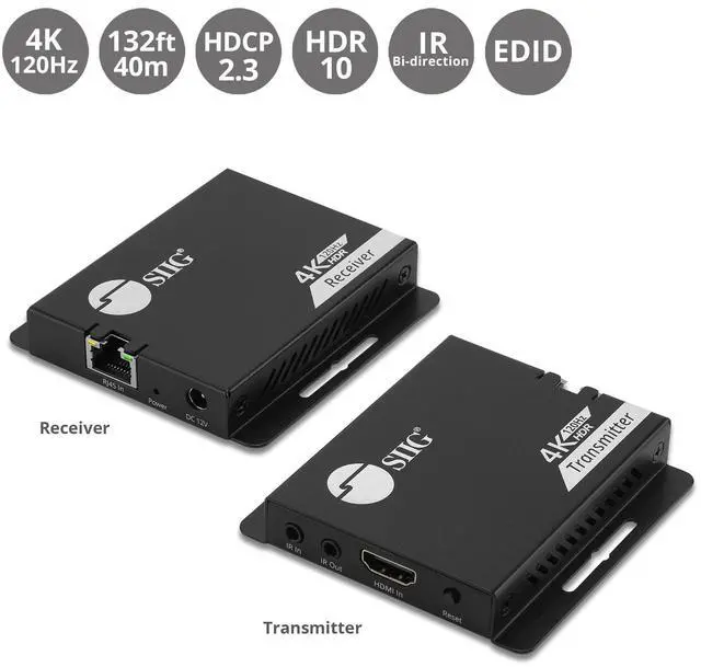 HDMI EXTENDER - Easily extends HDMI signals to 132ft (40m) over Cat6/7 cabling and IR Bi-directional remote-control HDMI device. Supports Ultra HD 4K@120Hz resolution for a smooth and immersive viewing experience ^^ 4K RESOLUTION - Supports Ultra HD video resolution up to 4K (3840x2160) @120Hz, HDR10, HDCP 2.3, YUV