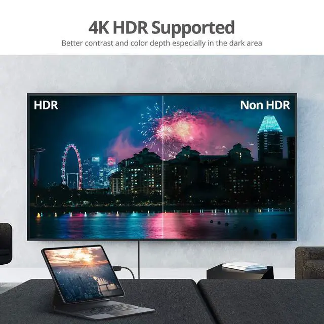 YUV 4:2: 0 10-bit HDR up to 6.6 ft (2 meters) ^^ Features USB-C reversible plug design, non-directional plug-in orientation, you will always plug-in the USB-C connector on the first try ^^ USB-C DisplayPort 1.2 Alt Mode or Thunderbolt 3 technology is available, compatible with 2016 MacBook Pro, 2015 MacBook, Google Chromebook Pixel, Surface Pro 7, Dell XPS Precision/Latitude, HP Elitebook / Spectre, Thinkpad X1, plus many more computers ^^ Plug-n-Play, no driver installation and no external power adapter required