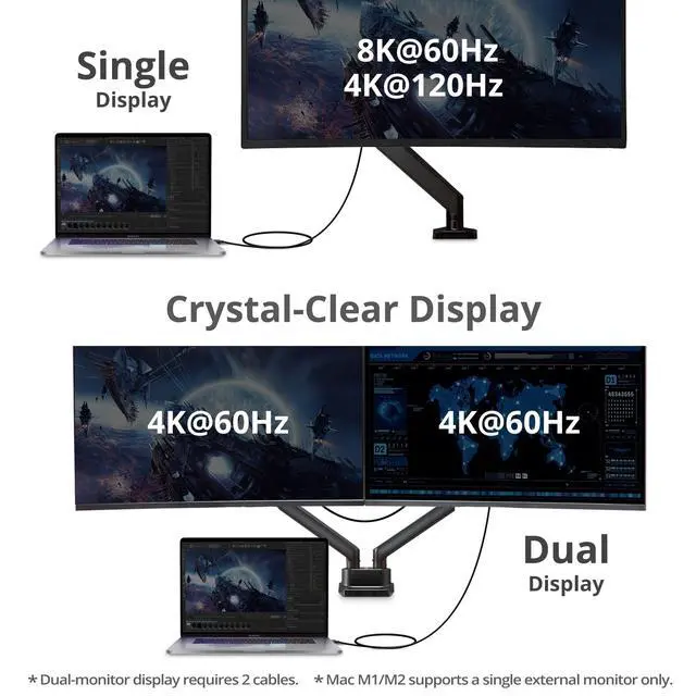 40Gbps Move Data Fast - Thunderbolt 4 cable data transfer speed up to 40Gbps. Music, pictures, movies and videos can be transferred in seconds, plug and play, no need driver ^^ Single 8K@60Hz / Dual 4K@60Hz - Dual-protocol support for TBT mode (PCI Express and DisplayPort Alt-mode) and supports thunderbolt daisy chain function; Enjoying ultra HD video resolution, single 8K@60Hz / 5K@60Hz / 4K@120Hz output or dual 4K@60Hz video, 40Gbps speed cables are suitable for eGPU and dual 4K UHD display scenarios ^^ 240W Extended Power Range - USB 4 Gen 3 Extended Power Range (EPR) cable is capable of carrying a massive 240W (48V/5A), compared to previous 100W available through USB Power Delivery (PD) cables.