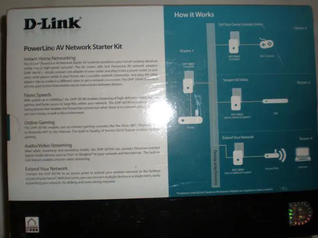 The D-Link PowerLine AV Network Starter Kit (DHP-307AV) allows you to create or expand your home network using your existing electrical wiring**. By simply attaching one adapter from your router into your existing electrical system, you can turn every power outlet into a possible network connection2.