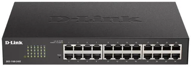 The DGS-1100-24V2 24-Port Gigabit Smart Managed switch is designed to meet the requirements of small, medium, and enterprise business networks. Compliant with IEEE 802.3 az Energy Efficient Ethernet (EEE), the switch consumes less energy by cutting down on power consumption when port utilization is low. It also features D-Link Green technology that helps save energy automatically. The switch can be managed by an intuitive client-based utility or a web-based management interface. The web-based interface provides a user-friendly way for network administrators to manage the switch down to the port level. The switch supports 802.1Q VLAN, QoS, Bandwidth Limiting, and Link Aggregation.