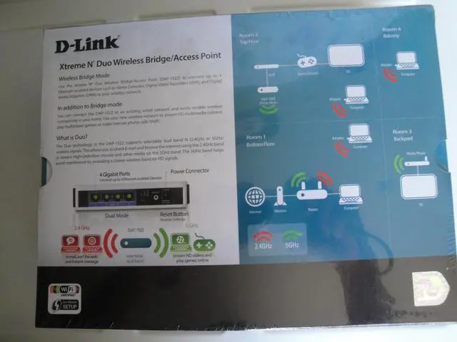 The D-Link Extreme-N Duo Wireless Bridge/Access Point is designed for users looking to create a wireless network or to connect multiple wired devices to an existing wireless network. Extreme-N Duo is the latest addition to the award-winning Extreme-N product family. Duo means the DAP-1522 works with next generation dual band ( 2.4GH z or 5GHz)2 802.11 n wireless devices as well as legacy 802.11 g products. This is H/W B-1 version.