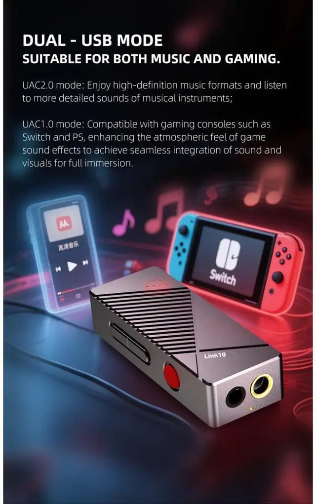 ^^ DUAL DAC CHIPS, HIGHER PARAMETERS LINK10 is equipped with two HIFI-grade DAC chips CS43131, featuring industry-leading parameter specifications. The SNR is close to 130dB, allowing you to barely hear any background noise; the THD is as low as -115dB, accurately restoring every detail of the music. ^^ 60-LEVEL DIGITAL VOLUME LINK10 features precise digital volume adjustment with meticulous and stepless regulation. Regardless of the impedance and sensitivity of the headphones, it can match exclusive volume levels, accurately adapting to the listening needs of each pair of headphones. ^^ 3.5MM + 4.4MM HEADPHONE OUTPUT For common 3.5 mm headphones, it can easily adapt.