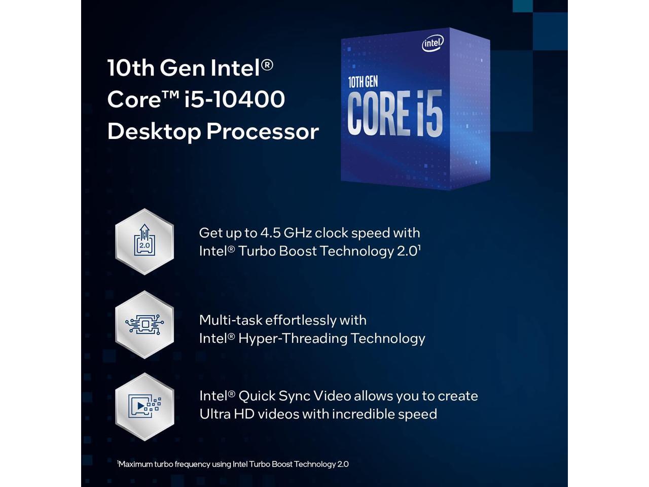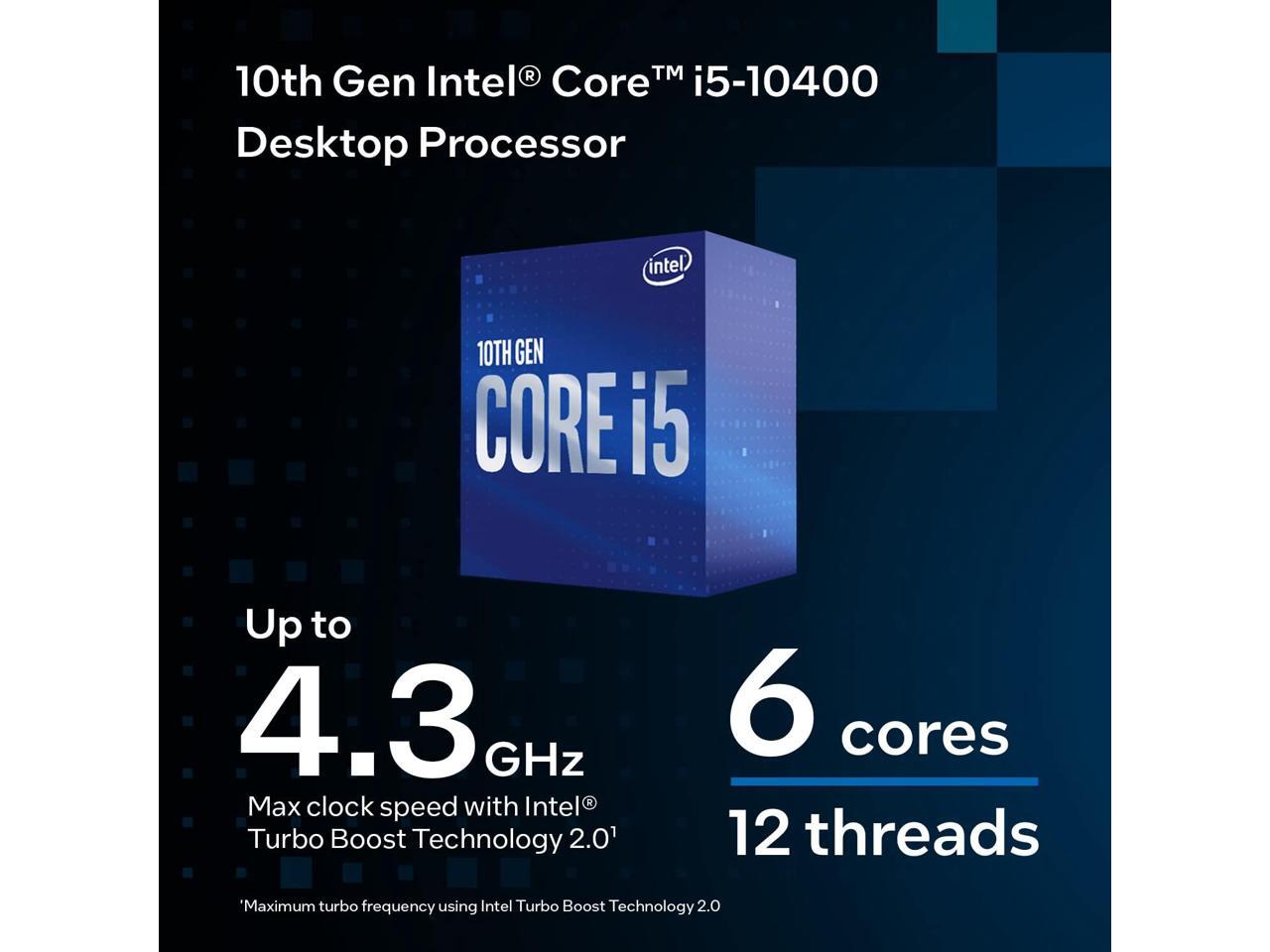 Intel Core i5-10400 Desktop Processor 6 Cores up to 4.3 GHz LGA1200 (Intel 400 Series Chipset) 65W, Model Number: BX8070110400