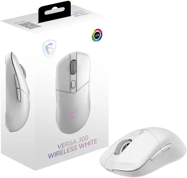 The VERSA 300 WIRELESS WHITE is a lightweight and versatile mouse, ergomomically designed for both gamers and professionals, weighing in at just 60 grams. It offers flexible connectivity options with MSI SWIFTSPEED 2.4 GHz wireless, Bluetooth, and wired for various setups. Featuring a highly accurate optical sensor with up to 8, 000 DPI, it ensures precise tracking and responsiveness. Built with micro switches rated for over 30 million clicks, the VERSA 300 WIRELESS delivers durability, performance, and comfort.