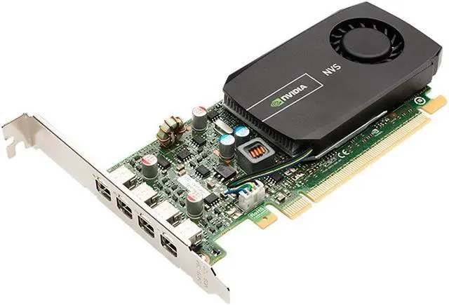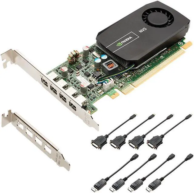 NVIDIA NVS 510: any mix of four DVI or DisplayPort outputs in a low-profile (LP) form factor. Reliably visualize any data across four displays with the power efficient, low-profile form factor NVIDIA NVS 510 business graphics solution. You get support for advanced DisplayPort 1.2 features like Multi-Stream Technology and Stream Cloning, plus the capability to natively drive four ultra-high resolution displays at up to 3840x2160 in small form-factor systems. This configuration of the NVS 510 also includes four locking mini-DisplayPort to DVI-D SL adapters for installations requiring DVI displays or a mix of DVI and DisplayPort monitors. The NVS 510 also takes advantage of the latest NVIDIA Kepler architecture with 2 GB of dedicated graphics memory to deliver more than 3x the performance of the previous-generation solution - without increasing power. And it's backed by a super-reliable hardware and software platform and robust IT management tools to enable fast, cost-effective integration, deployment, and support across large enterprises. This makes it the ideal solution for today's most demanding business user.