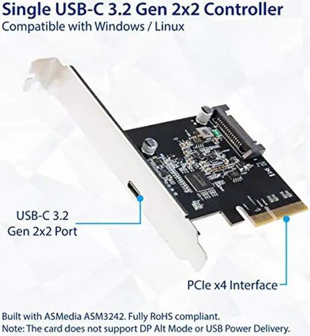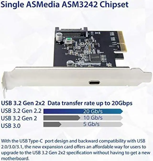 The new expansion card adds full support for the new specification on motherboards with a PCIe x4 slot. With the USB Type-C port design and backward compatibility with USB 2.0 / 3.0 / 3.1, the new expansion card offers an affordable way for users to upgrade to the USB 3.2 Gen 2x2 specification without having to get a new motherboard.