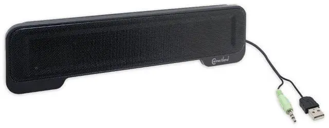 Connect land CL-SPK20138 speaker is a light weight. USB powered sound bar. Simply connect it to computer 3.5 mm jack to begin enjoying unmatched Stereo sound. Easily attaches securely on top of most laptop computers with easy plug-and-play setup. Requires an USB port for power.