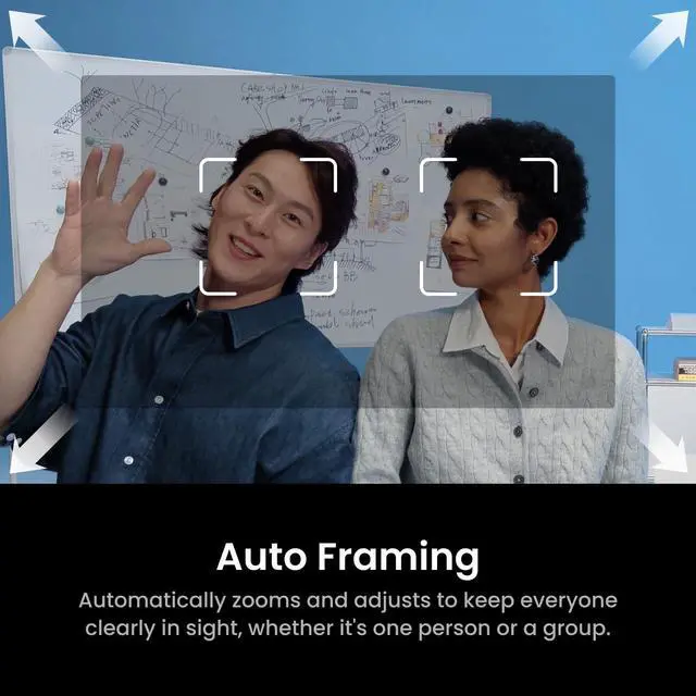 Smart Gesture & Mobile Control: Start tracking, zoom, switch modes, or enable Whiteboard Mode using simple hand gestures (or your smartphone).