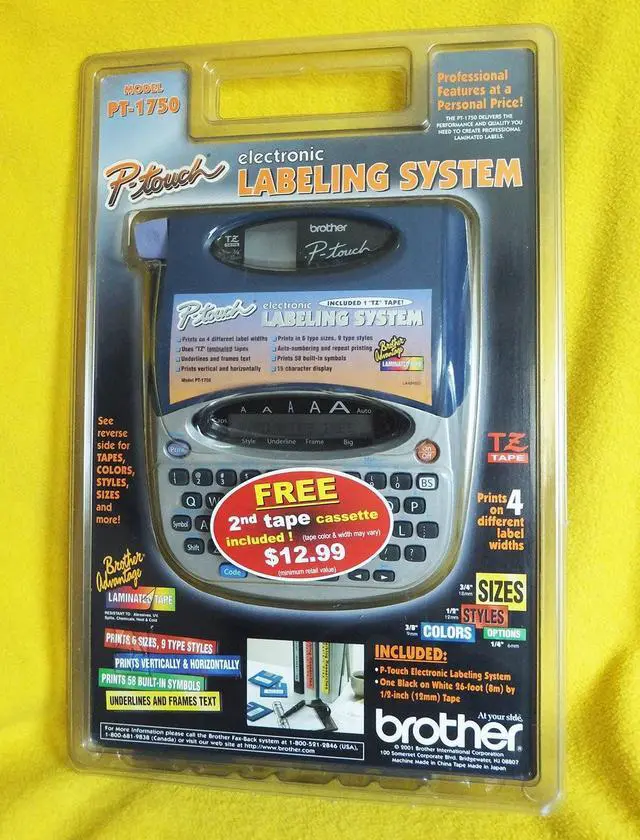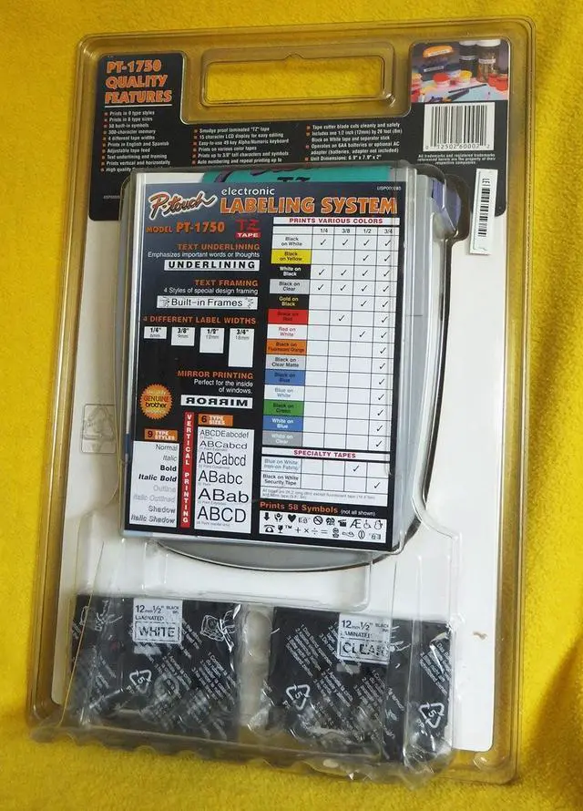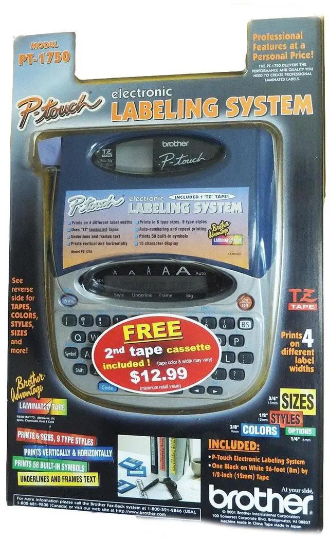 : The PT-1750 delivers the performance and quality you need to create basic laminated labels at an attractive value point. With its large 15 character LCD display, the PT-1750 prints up to 2 lines, in 6 type sizes and 9 type styles, along with mirror printing, underlining and text framing features. Suited to your office label needs, the PT-1750 has a 15 character LCD display for easy editing, 57 built-in symbols and can print on 4 different TZ label widths from 6mm to 18mm.