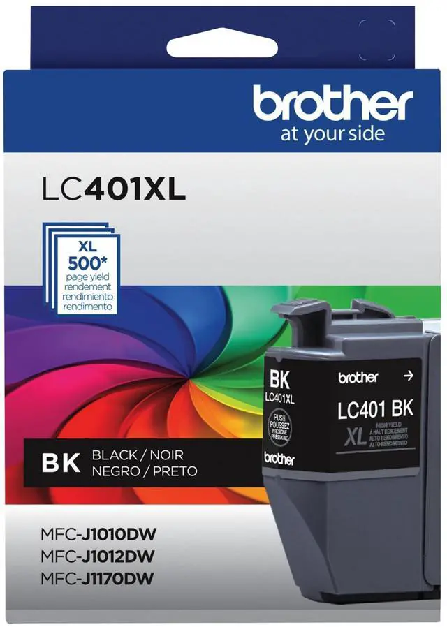 Trust Brother Genuine ink for superior inkjet print quality and performance you can consistently rely on. Brother Genuine LC401XLBK High Yield Black Ink Cartridges deliver consistent, professional print quality and ultra convenience you can count on for up to 500 pages. (1) Brother Genuine ink is intelligently engineered to work seamlessly with your Brother inkjet printer to consistently produce sharp prints that withstand the test of time. A full range of single and multi-pack color and black ink cartridges is available that delivers high quality prints, reliable page yields and exceptional value. Brother Genuine LC401XLBK ink cartridges are for use with Brother affordable color inkjet all-in-one printers MFC-J1010DW, MFCJ1012DW and MFC-J1170DW.