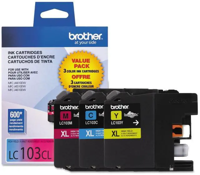The use of Brother Genuine replacement high yield ink cartridges like the LC1033PKS produces sharp, vibrant, color pages with the quality you expect from Brother products. The Brother LC1033PKS replacement ink cartridges are compatible with 17 Brother Inkjet printers. These professional cartridges ares intelligently engineered to work in seamless unison with your Brother printer. This product is sold as a three pack of individual color ink cartridges. The Brother Genuine LC1033PKS replacement high yield color ink cartridges can print approximately 600 pages/cartridge in accordance with ISO/IEC 24711 (Letter/A4) standards. Brother is dedicated to being environmentally responsible and offers disposal programs for properly discarding its cartridges.