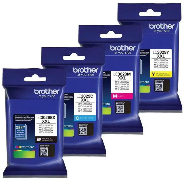 The Brother MFC-J6535DW Extra High Yield Ink Cartridge Set contains (1) LC3029BK, (1) LC3029C, (1) LC3029M, and (1) LC3029Y. These inks works with the following Brother models: Brother MFC-J5830DW, MFC-J6535DW, MFC-J6535DW, MFC-J5930DW.