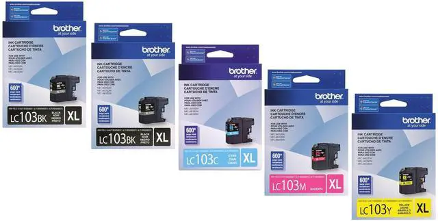 Brother LC103 Printer High Yield Cartridge Ink (2-Black-1-Cyan-Magenta-Yellow)