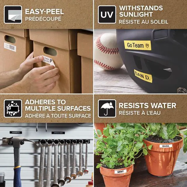 Created specifically for your LabelManager and LabelWriter Duo label makers, authentic DYMO D1 labels deliver the high-performance you need to handle most labeling jobs. D1 labels adhere to nearly all clean, flat surfaces including plastic, metal and glass, and feature an easy-peel split backing for fast labeling and easy organization. Designed to take the hassle out of home and office organization, your DYMO D1 labeling tape is 1/2-inch (12mm) wide x 23-feet (7m) long with black print on white tape.