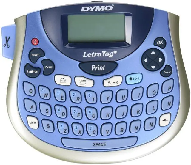 Dymo LetraTag 100T Tabletop Labeller Blue (new packaging) is compact and easy to use. It features a computer style keyboard and a large LCD display. Contains 7 fonts and 5 text sizes. Powered by 4 x AA batteries.