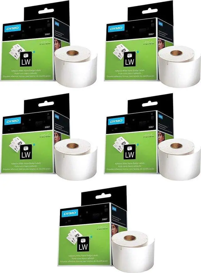DYMO 30857 LW Name Badge Labels (Pack of 5) For use with LabelWriter 450, LabelWriter 450 Turbo and LabelWriter 450 Twin Turbo Address Labels; Five Rolls, Each with 250 2-1/4'' x 4'' Labels Key Features For use with LabelWriter 450, LabelWriter 450 Turbo and LabelWriter 450 Twin Turbo Address Labels Direct thermal printing process, so there's no need for messy, expensive ink or toner cartridges Packed in rolls, so you can print a label or hundreds with ease Black printing on white background Five rolls are included, each with 250 2-1/4'' x 4'' (57 x 102 mm) labels, 1250 labels total