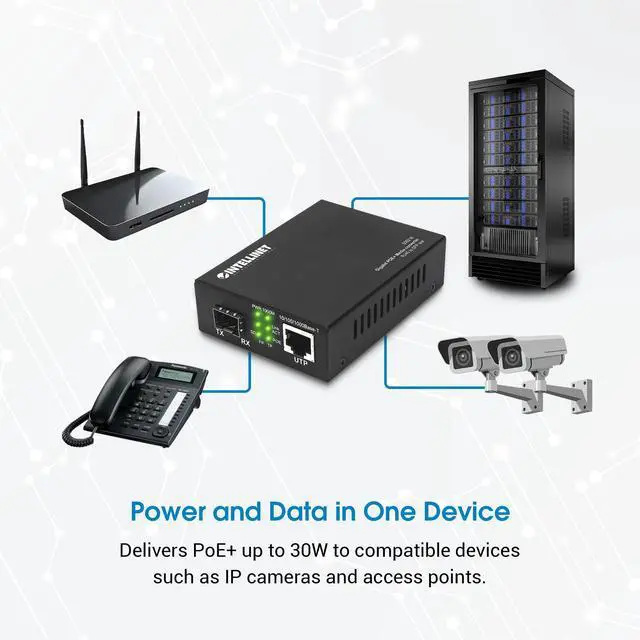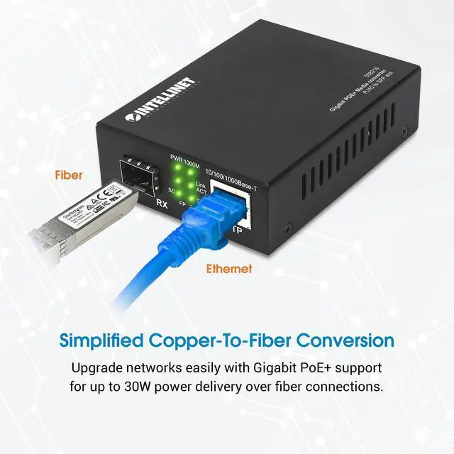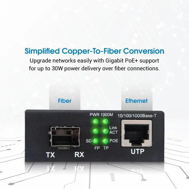 SIMPLIFY COPPER-TO-FIBER NETWORK EXPANSION: Converts 10/100/1000Base-T Ethernet to SFP fiber while remaining fully transparent to the network for easy upgrades and long-distance connectivity. ^^ BUILT-IN POE+ POWER UP TO 30