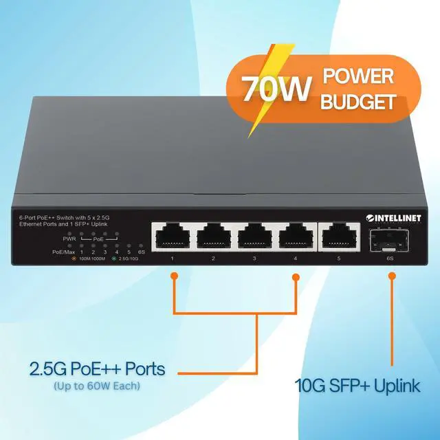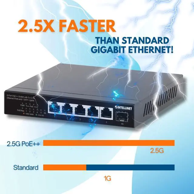 ^^ Fast Ethernet Connectivity: Equipped with five 2.5GBASE -T Ethernet ports, this switch ensures speedy data transfers. Its also backward compatible with older 10/100/1000 Mbps devices, making it a flexible choice for various networking needs.
