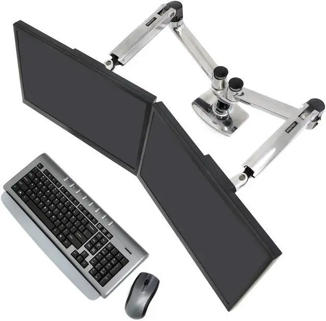 Durable polished aluminum construction!. Create a productive side-by-side configuration that lifts screens up to where they are easier to see while reclaiming valuable worksurface.