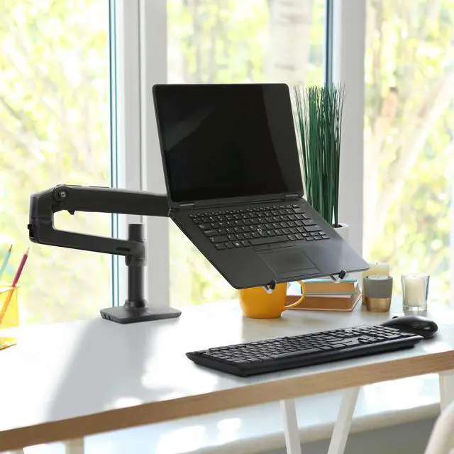 Ergonomic workspace: Allows you to add a laptop or convertible notebook in tablet or laptop mode to your monitor arm or workstation for comfortable viewing and flexible positioning