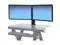 Upgrade your WorkFit to hold two LCDs above the desktop. Offers 5" (13 cm) of height adjustment. Easily lift LCD screens to proper height for ergonomic comfort.