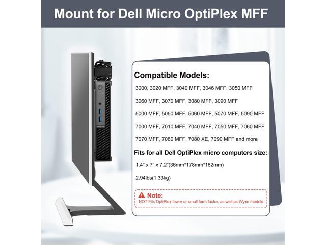 - Compatible Models: Mount for Dell micro OptiPlex MFF 3000, 3020 MFF, 3040 MFF, 3046 MFF, 3050 MFF, 3060 MFF, 3070 MFF, 3080 MFF, 3090 MFF, 5000 MFF, 5050 MFF, 5060 MFF, 5070 MFF , 5090 MFF, 7000 MFF, 7010 MFF, 7040 MFF, 7050 MFF, 7060 MFF, 7070 MFF, 7080 MFF, 7080 XE, 7090 MFF and more. Fits for all Dell OptiPlex micro computers size 1.4" x 7" x 7.2". Important Notes: NOT Fits OptiPlex tower or small form factor, as well as Wyse models.