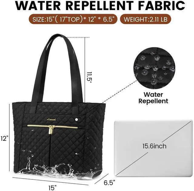 LOVEVOOK Laptop Bag for Women 15.6 inch, Diamond Quilted Work Tote Bags Womens Laptop Tote Bag Computer Shoulder Bags, Stylish Travel Tote Bags Laptop Purse Case Briefcase Handbag with Clutch Bag, Black
