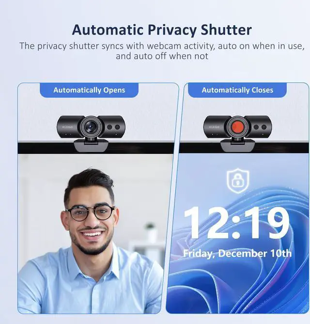 [(Automated Privacy Cover)] Designed for privacy, the webcam features an automated privacy cover that opens during video calls and closes when the call ends. Offers a proactive approach to privacy, ensuring the camera is only active when needed.