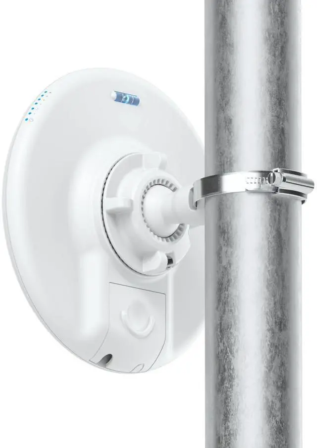 • 5 GHz wireless bridge with PoE output that connects at 5+ km distances or seamlessly uplinks to UniFi WiFi.