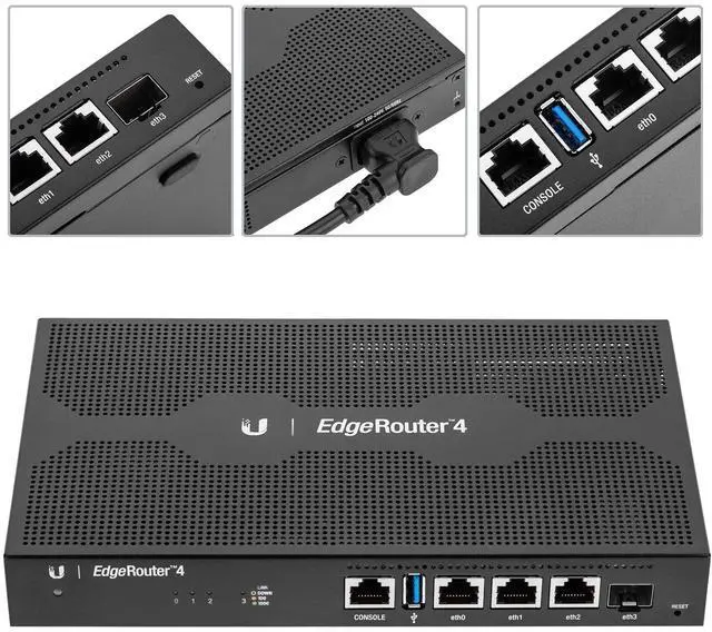Ubiquiti Networks introduces the EdgeRouter 4, the next generation of router for the EdgeMax platform. EdgeRouters combine carrier class reliability with enterprise level features in a compact and affordable unit. The EdgeRouter 4 offers Gigabit Ethernet ports and a SFP port for a fiber link. The EdgeRouter 4 is capable of routing up to 3.4 million packets per second and has a line rate of 4Gbps.