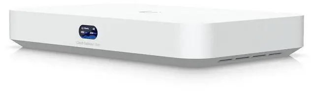 Product descriptionDesktop 10G Cloud Gateway with integrated 4-port 2.5 GbE switch, selectable NVR storage, and full UniFi application support. Less ThanbRGreater ThanThis compact, plug-and-play gateway delivers up to 5 Gb/s IDS/IPS routing with advanced security, including a stateful firewall and VPN support powered by a 2.2 GHz quad-core processor with 3 GB memory. It features 10 Gb/s RJ45 and SFP+ WAN ports with multi-WAN load balancing, a 10G SFP+ LAN port for fiber connectivity, and an integrated 4-port 2.5 Gb/s switch with one 30W PoE+ port. A built-in 0.96" display shows system status, and optional M.