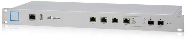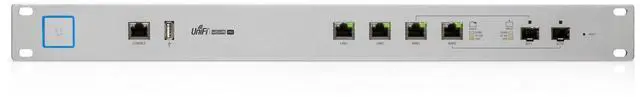 The USG-PRO-4 with four Gigabit Ethernet ports and two SFP ports, the USG-PRO-4 Enterprise Gateway Router with 2 Combination SFP/RJ-45 Ports from Ubiquiti Networks is designed to be the backbone of a network. This gateway is designed to support multiple network switches which in turn can support a variety of networked devices such as access points, management stations, VoIP devices, and much more. The integrated SFP combination ports make it simple to connect fiber channel devices such as SAN servers and other local area networked devices. On the back of this rackmountable gateway you will find a single RJ-45 serial console port for command line interface management, two LAN ports, two WAN ports, and two SFP combination ports offering a diverse set of connection options.