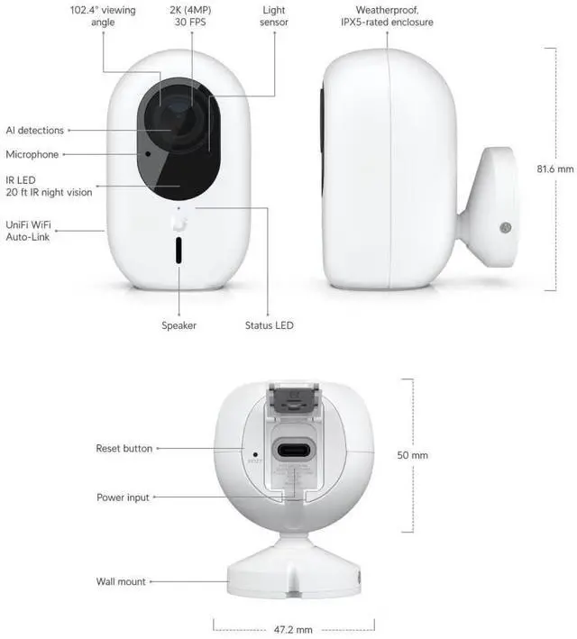 Form factor: Cube. Lens viewing angle, horizontal: 102.4, Lens viewing angle, vertical: 54.9, Lens viewing angle, diagonal: 120.6.