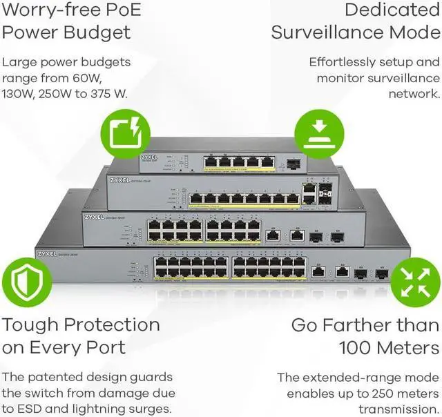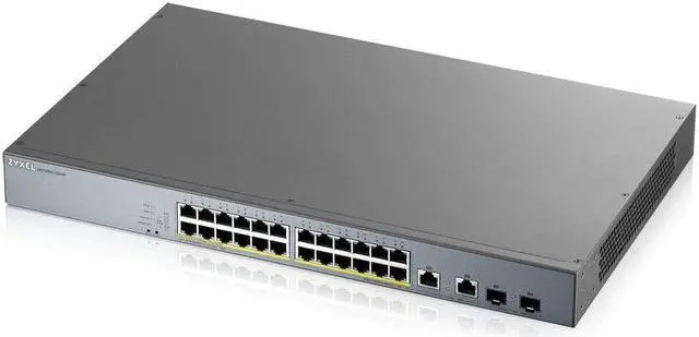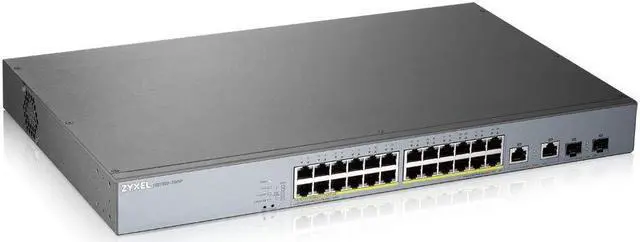 Zyxel Nebula 24-port Gigabit Smart Managed PoE+ Switch with 375 Watt Budget and 2 Gigabit Combo Ports with Nebula Cloud Managment, Long Range PoE Switch [GS1350-26HP]