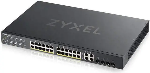 Zyxel 24-Port Gigabit Ethernet PoE+ Switch | Smart Managed | 375 Watt Budget | 4x Gigabit Combo Ports | Hybrid Cloud Mode [GS1920-24HPv2]