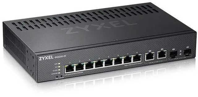 Fully managed layer 2 switching solution. 8 port GbE 100/1000 Mbps + 2 port GbE combo (SFP/RJ-45) (10 ports total). ^^ NebulaFlex Pro gives you the flexibility to switch between standalone and intuitive Nebula cloud managed mode with 1-Year Pro Pack bundled. ^^ L2 multicast, IGMP snooping, MVR and voice VLAN for convergence. Enhanced network protection with IP source guard, DHCP Snooping, ARP inspection, CPU protection. ^^ Fan-less design delivers silent operation.