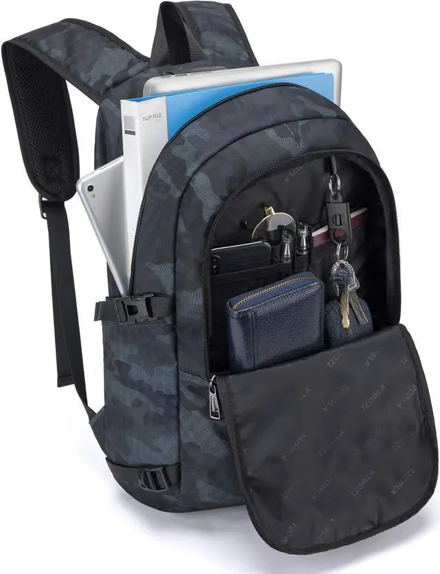 Warranty Tzowla promise LIFE-TIME warranty. If anything goes wrong with our product, please contact our customer service team. We will resolve it within 24 hours. Features --Built-in USB cable and headset cable, you can put your power bank into backpack and connect internal USB cable, then let your charging cable insert USB port to connect your electronic device --External headphone interface frees our hands and offers more convenient of enjoying musics and audios --Durable and sturdy water resistant polyester fabric material, keeps inside dry and protects your electronics --Spacious pockets with independent 12+compartments can hold your items, makes the computer backpack organizational and professional --Luggage belt design helps to free your hand and back when travelling and on a business trip --Widen S-shaped shoulder straps can relieve shoulder pressure and makes it easy to carrying --Portable key ring design in the backpack makes your keys, small scissors well-organized --Light weight slim laptop backpack with modern style, fits for daily use at school, college, business and travel, suitable for women, men and students.