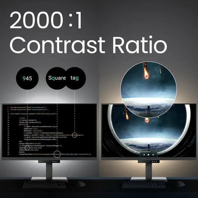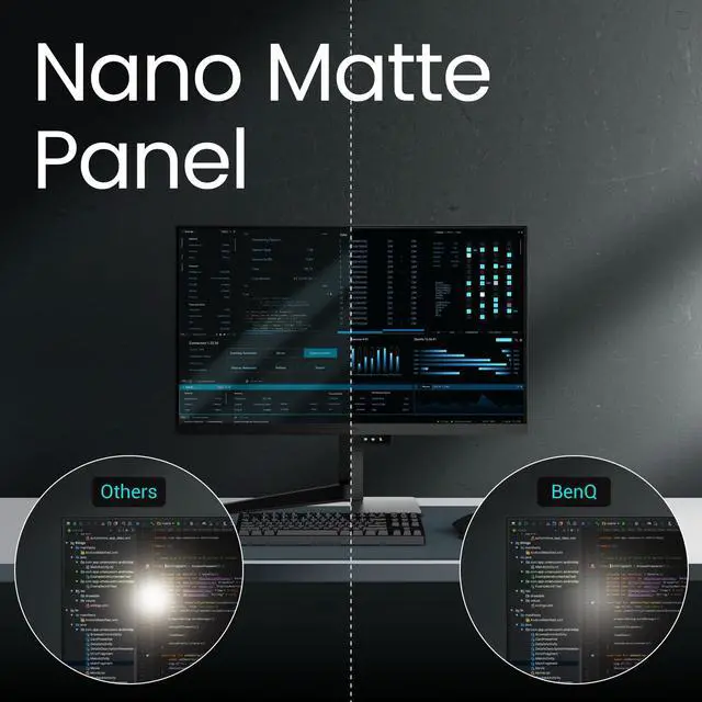 [Nano Matte Panel] Featuring a low reflection property to minimize distractions, delivering unparalleled clarity for peak performance. ^^ [Coding Modes with Dark Theme and Light Theme] BenQ's advanced coding modes deliver clear fonts and better code differentiation, reducing eye strain. ^^ [Night Hours Protection] Benefit from minimum brightness technology, discover enhanced eye protection during night hours and dark room usage. ^^ [MoonHalo Backlight] With customizable color temperature, brightness, and light modes, MoonHalo ensures optimal eye protection and focus. ^^ [Ergonomic Stand] BenQ Ergo Arm enhances flexibility and provides the optimal screen position for a more comfortable and productive user experience.