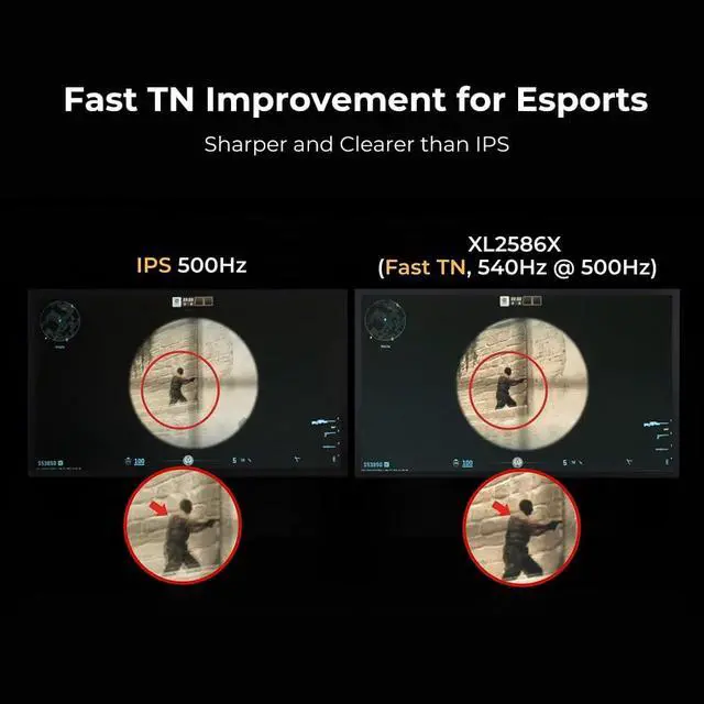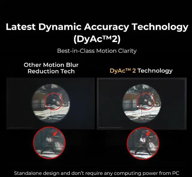 SHARPER AND CLEARER than IPS a Fast TN panel provides clearer and sharper outlines of overall moving images, helping you focus and have less distractions from the unwanted afterimage of the motions in-game. ^^ LESS OVERSHOOT, LESS DISTRACTION in Game - The newly fine-tuned TN panel effectively reduces overshoot that are observed from aggressive liquid crystal overdrive under certain circumstances on a regular panel. ^^ VIVID COLOR FILM - Color performance is improved by 35%, enhancing and distinguishing enemy targets from the background and improving the color wash-out on a regulat TN panel. ^^ BEST IN-CLASS MOTION CLARITY Through ZOWIEs exclusive panel hardware design, DyAc/DyAc/DyAc2 provide motion clarity and better overall visual experience that will make a different in your gameplay.