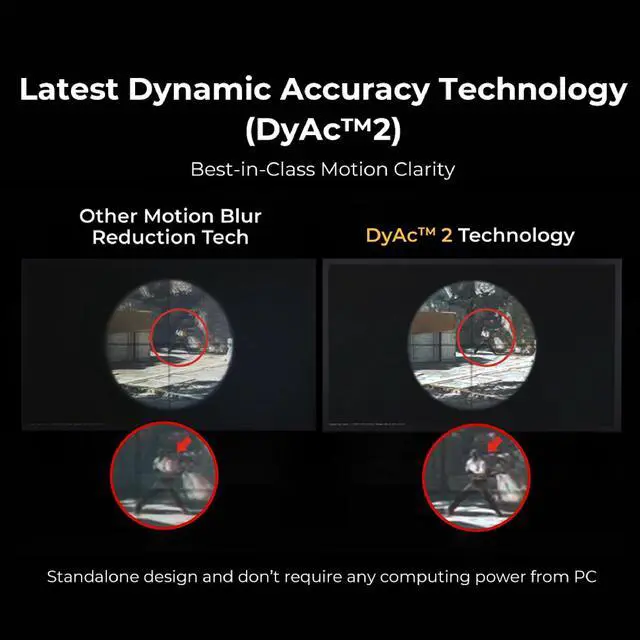 SHARPER AND CLEARER than IPS a Fast TN panel provides clearer and sharper outlines of overall moving images, helping you focus and have less distractions from the unwanted afterimage of the motions in-game. ^^ Less Overshoot, Less Distraction in Game - The newly fine-tuned TN panel effectively reduces overshoot that are observed from aggressive liquid crystal overdrive under certain circumstances on a regular panel. ^^ BEST IN-CLASS MOTION CLARITY Through ZOWIEs exclusive panel hardware design, DyAc/DyAc/DyAc2 provide motion clarity and better overall visual experience that will make a different in your gameplay. With its dual backlight design Dynamic Accuracy Technology (DyAc2) with its dual backlight design, enhances performance in blur reduction while it offers a soft light output, facilitating eye adaptation.