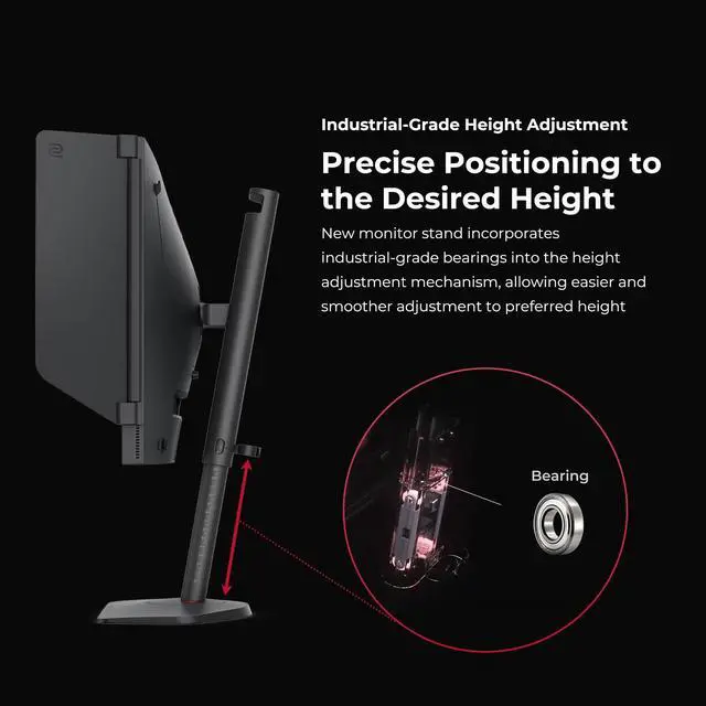 ^^ AUTOMATICALLY ADJUST COLOR MODES The new XL Setting to Share eliminates setting adjustment hassles, enhancing the switching-free gaming experience. Automatically switches color modes based on screen content, saving setting adjustment hassles and enhancing switching-free gaming experience. ^^ COMFORT & ADJUSTABILITY New height adjustment powered by industrial-grade bearing design, allowing easier and smoother adjustment to any preferred height.