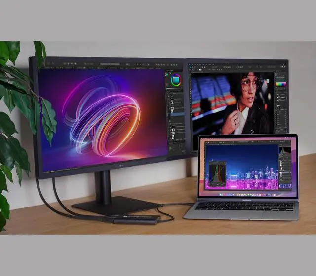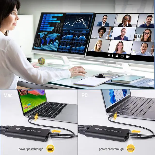 Displays: Bus-powered adapter enables connection of two 4K HDMI displays to a single Thunderbolt or USB-C port on your computer. ^^ Passes Power to